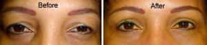 Upper eyelid blepharoplasty involves the improvement of two characteristics of the aging upper eyelid area. The first is correction of excess skin of the upper eyelid, a condition referred to as “hooding of the upper lid.” The second condition that can be corrected is the puffiness that is seen in the inner corner and middle of the eyelid as a result of herniation or pushing forward of fat located in these areas above the eye.